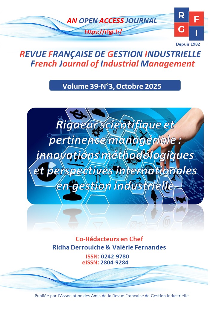 La Revue Française de Gestion Industrielle (RFGI) poursuit sa mission de diffusion d’une recherche rigoureuse, ouverte et accessible, tout en favorisant le dialogue entre le monde académique et celui de la pratique managériale. Ce numéro (Vol. 39, n°3) s’inscrit pleinement dans cette dynamique, en réunissant cinq articles qui explorent, chacun à leur manière, les nouvelles frontières de la recherche appliquée en gestion industrielle.